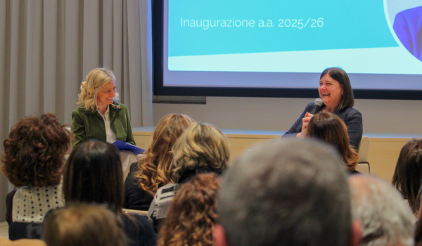 “La formazione è un’opera corale“: questa frase ha rappresentato il cuore profondo della splendida Inaugurazione dell’a.a. 2025/2026 che si è tenuta lo scorso 21 febbraio nella residenza universitaria Viscontea, a Milano. Ospite speciale è stata la prof.ssa Elena Beccalli, Rettore dell’Università Cattolica del Sacro Cuore con cui le diverse anime del collegio si sono messe in dialogo per arricchirsi su alcune tematiche di tendenza relative all’aspetto educativo, a dimostrazione viva del messaggio citato all’inizio. La Beccalli ha ascoltato la voce della Direzione, quella delle residenti, quella della alumnae e anche quella del personale che si prende cura della casa (l’amministrazione). Non è mancato nemmeno il fondamentale punto di vista delle famiglie, che hanno partecipato numerose all’evento. Insomma, l’incontro ha rispettato le premesse stabilite dal titolo ma anche quelle del sottotitolo che recitava: “Un ‘noi’ al servizio delle nuove generazioni“. Dunque, un coro di voci idealmente sedute attorno a un tavolo, ognuna megafono di una generazione diversa e rappresentate un ruolo diverso all’interno della famiglia educante della Viscontea.